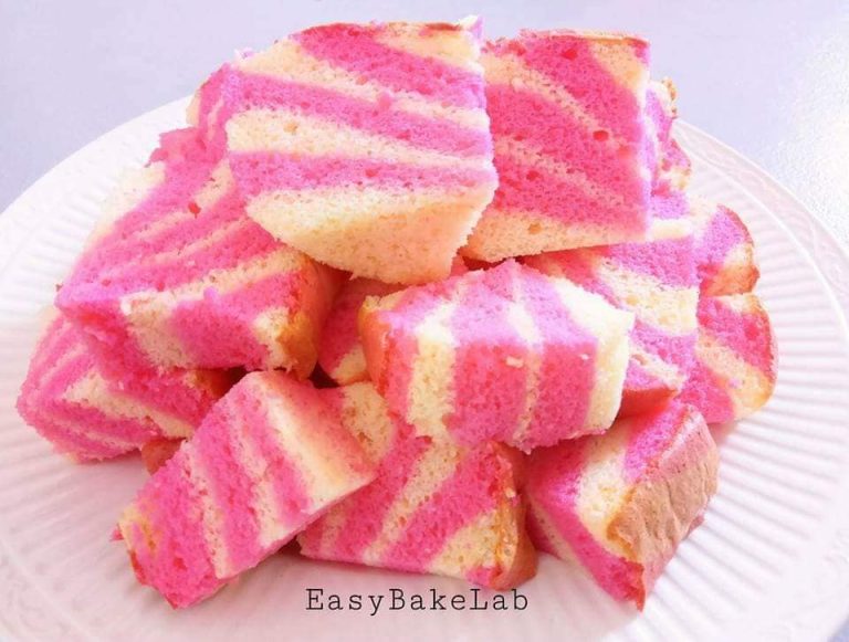 - Bahagikan kepada 2 adunan. Pink dan putih. Ikut suka kaler yang hampa nak. Letak kaler kelabu pon buleh aih. Tuang ke dalam loyang 8inci secara berselang seli.